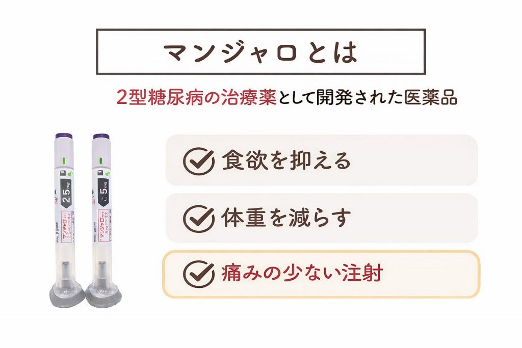 マンジャロは、日本では2型糖尿病の治療薬として承認されています。しかし、糖尿病患者さんではなく、体重管理・減量を目的とした使用は、保険適用外の自由診療となります。